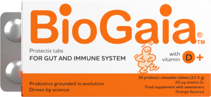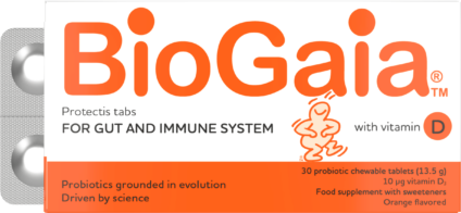 The product pictures are created using BioGaia’s master trade dress. Packages look different depending on market.